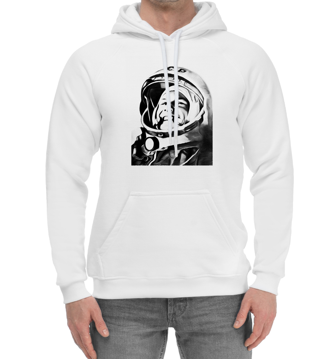 Мужской хлопковый худи с принтом «Юрий Алексеевич Гагарин»