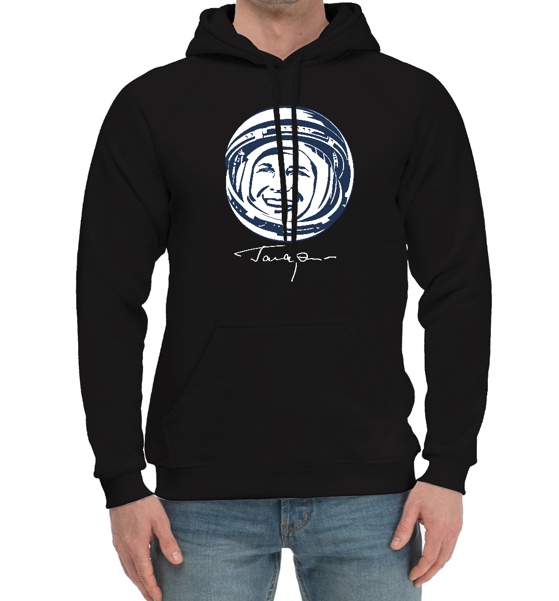 Мужской хлопковый худи с принтом «Юрий Гагарин Первый»