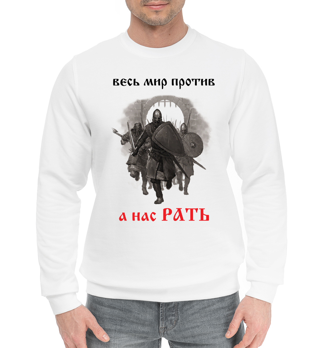 Мужской хлопковый свитшот с принтом «А нас РАТЬ!»