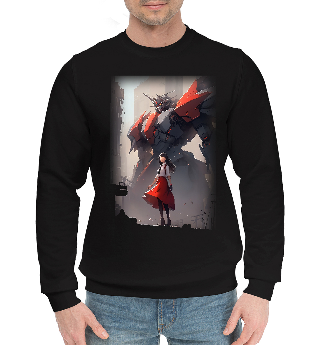 Мужской хлопковый свитшот с принтом «Аниме девушка с роботом»