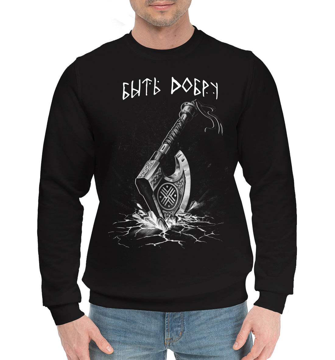 Мужской хлопковый свитшот с принтом «Боевой славянский топор»