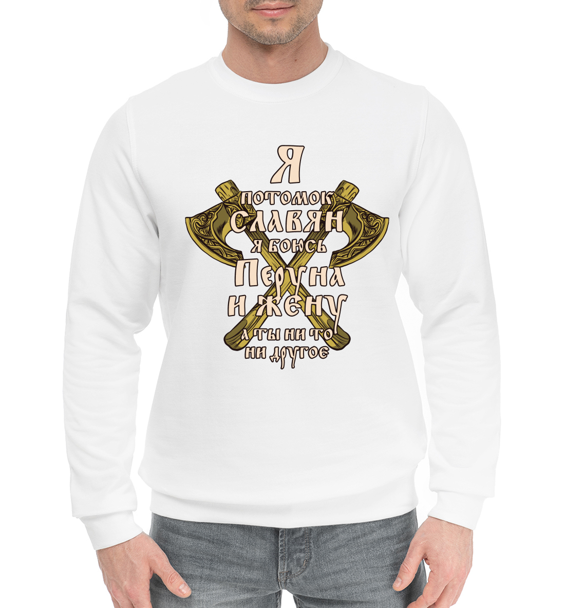 Мужской хлопковый свитшот с принтом «Боюсь Перуна и Жену»