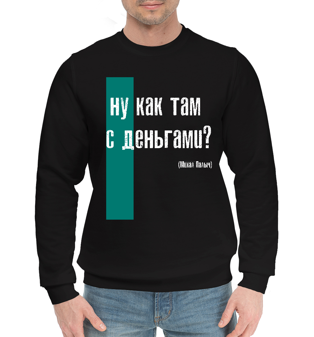 Мужской хлопковый свитшот с принтом «Чё с деньгами»