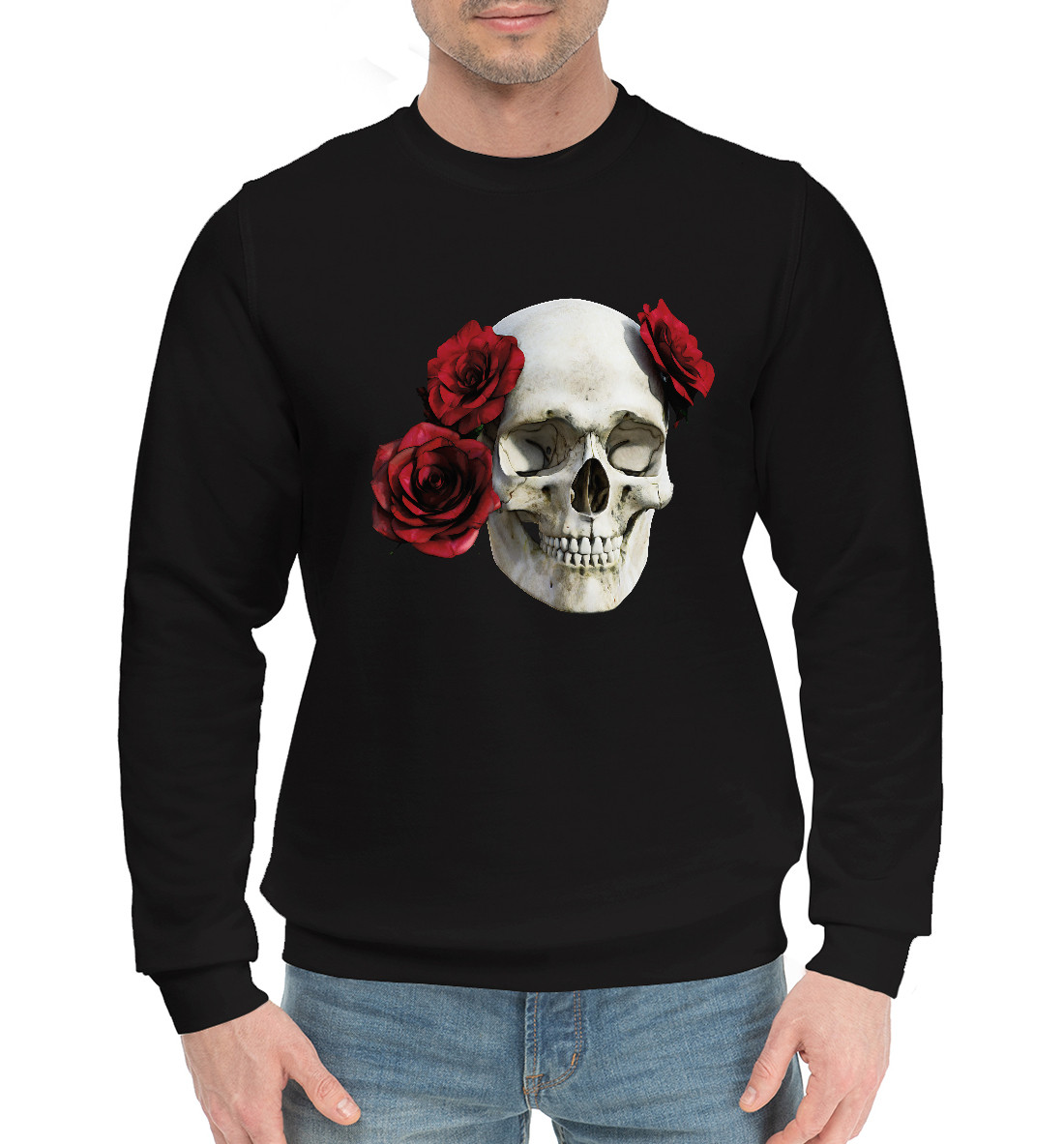 Мужской хлопковый свитшот с принтом «Череп с розами»