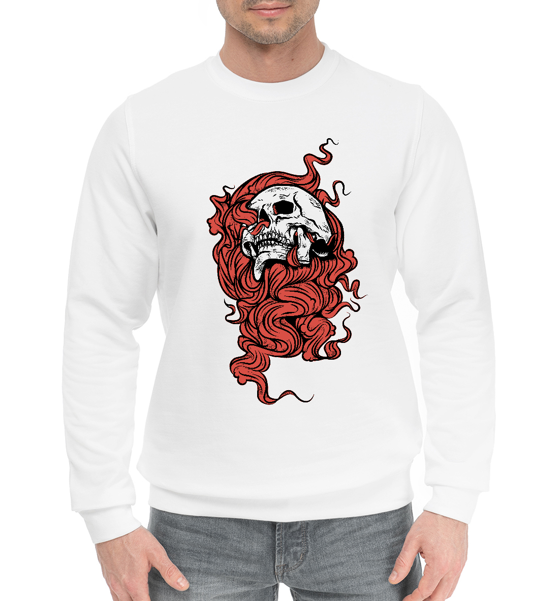 Мужской хлопковый свитшот с принтом «Череп волокна красного цвета»