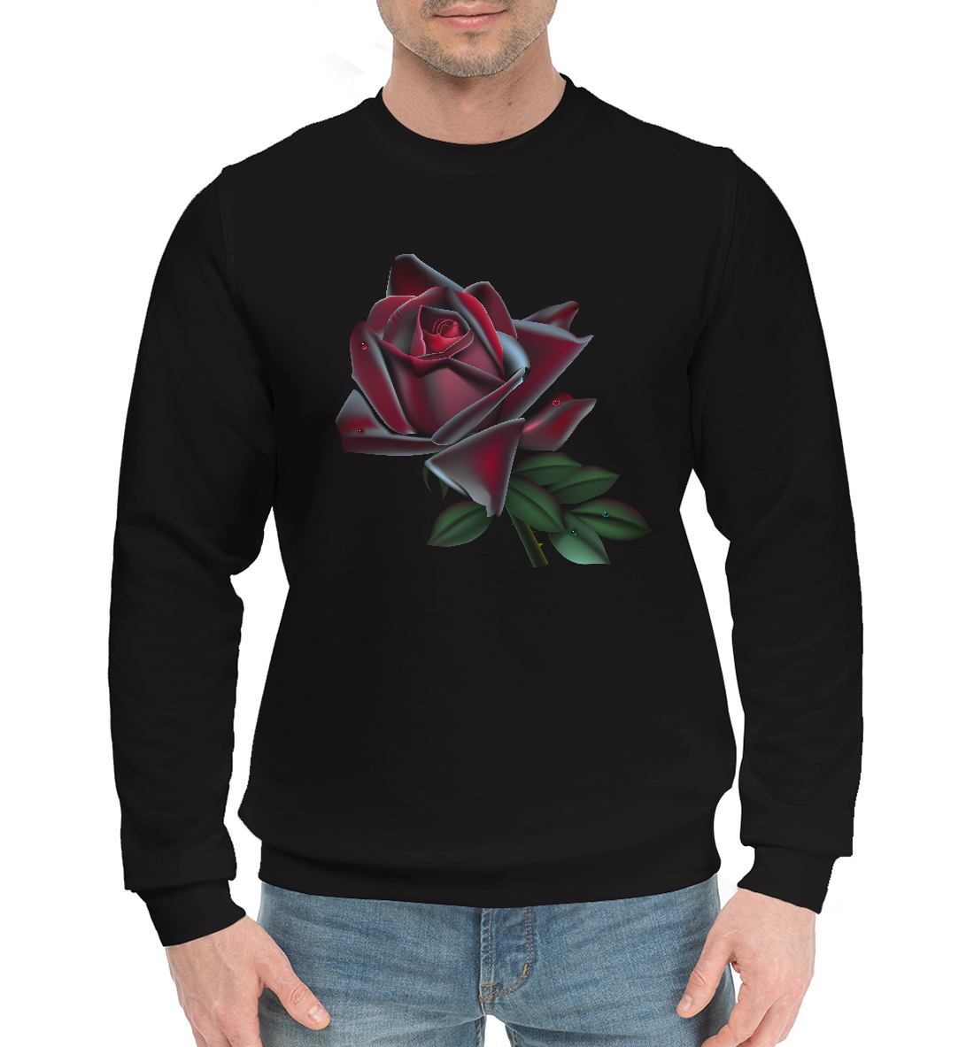 Мужской хлопковый свитшот с принтом «Черная роза»