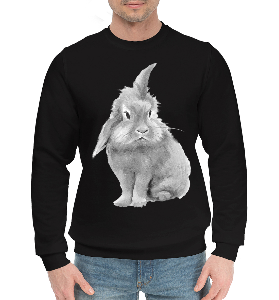 Мужской хлопковый свитшот с принтом «Черно-белый кролик»