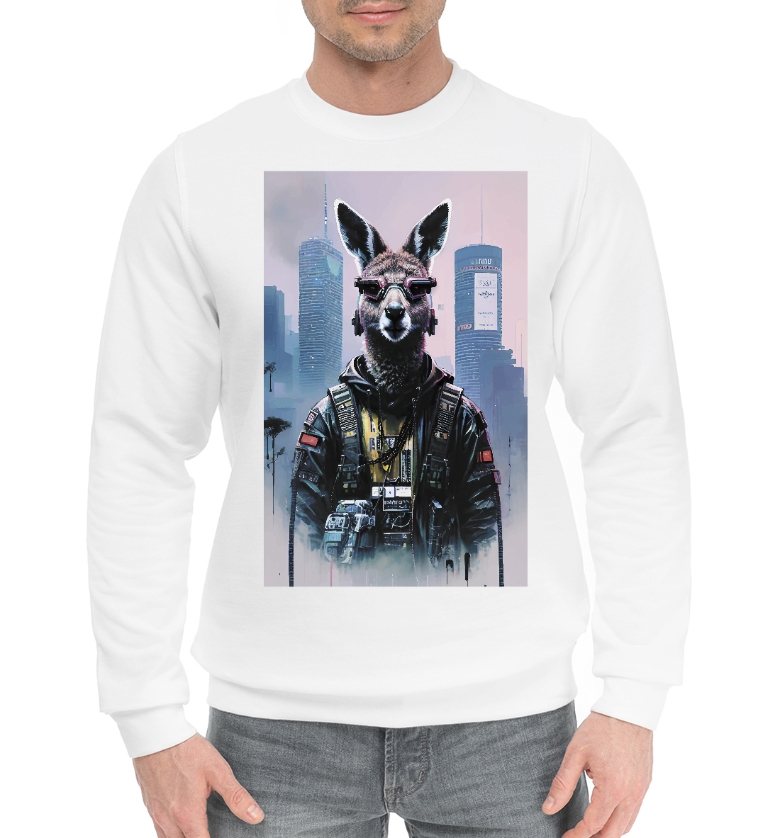 Мужской хлопковый свитшот с принтом «Cool kangaroo - neural network»