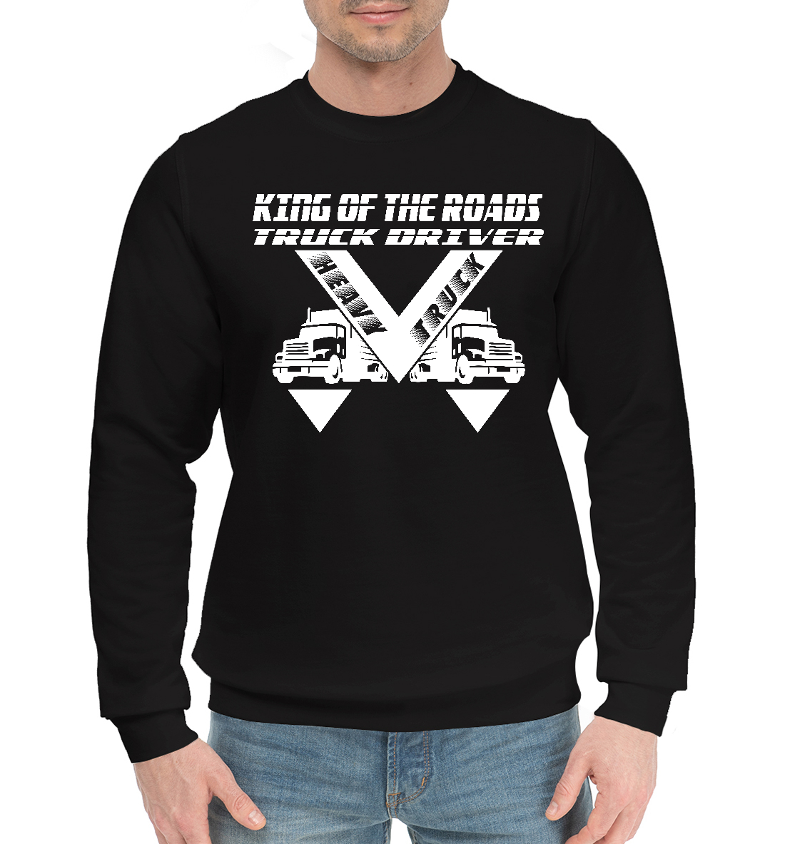 Мужской хлопковый свитшот с принтом «Дальнобойщик - король дорог»