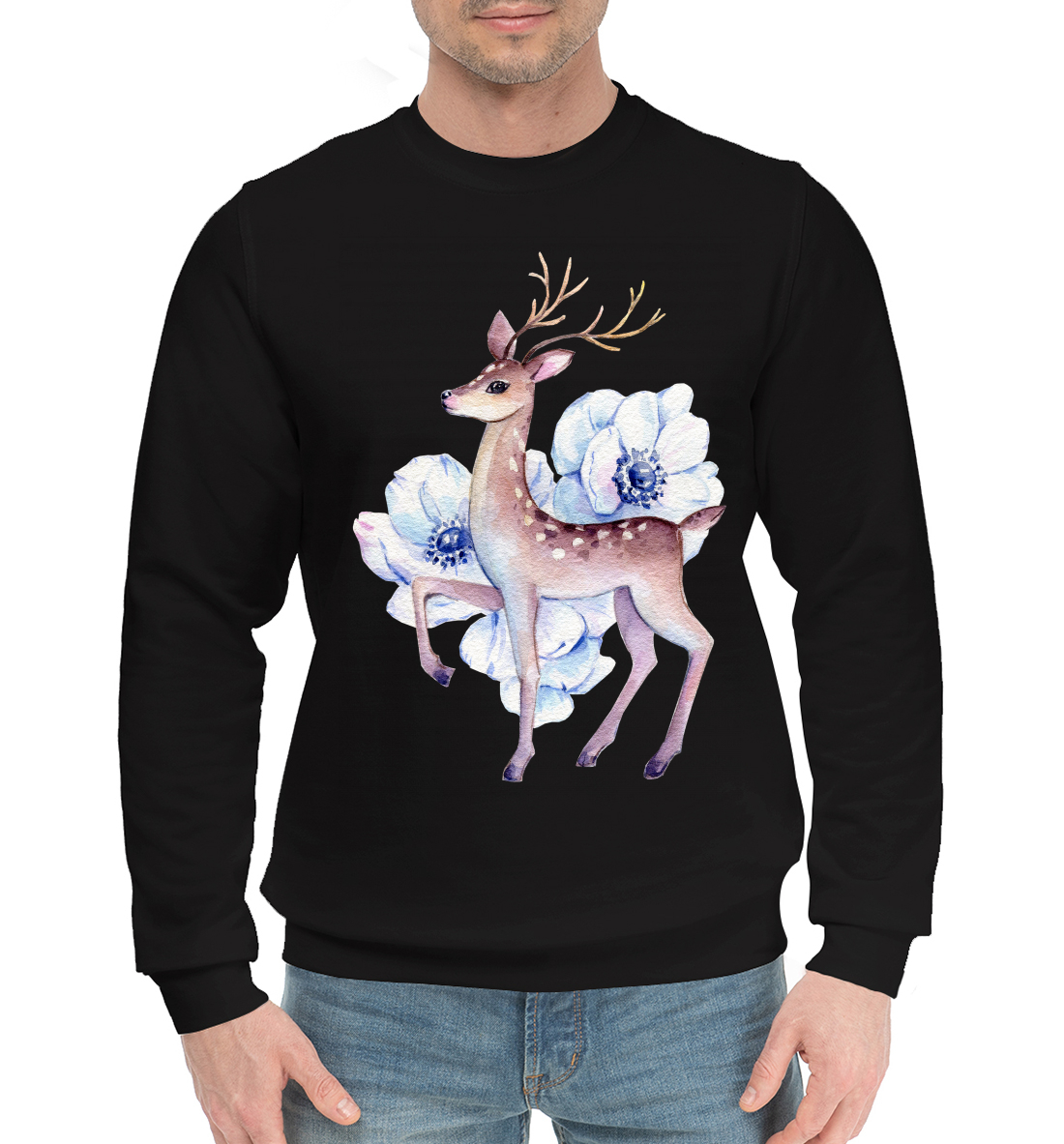 Мужской хлопковый свитшот с принтом «Deer and flowers»