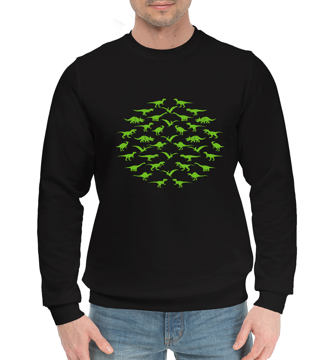 Мужской хлопковый свитшот с принтом «Динозавры (силуэты)»
