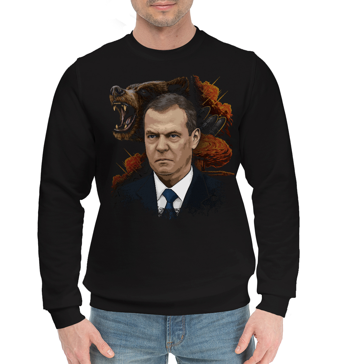Мужской хлопковый свитшот с принтом «Дмитрий Медведев с медведем»