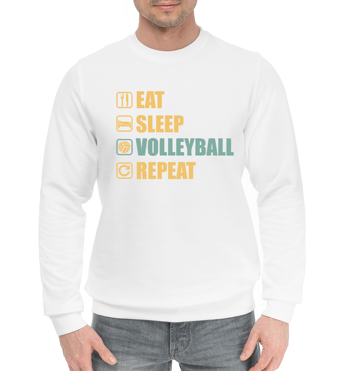 Мужской хлопковый свитшот с принтом «Есть, спать, волейбол»