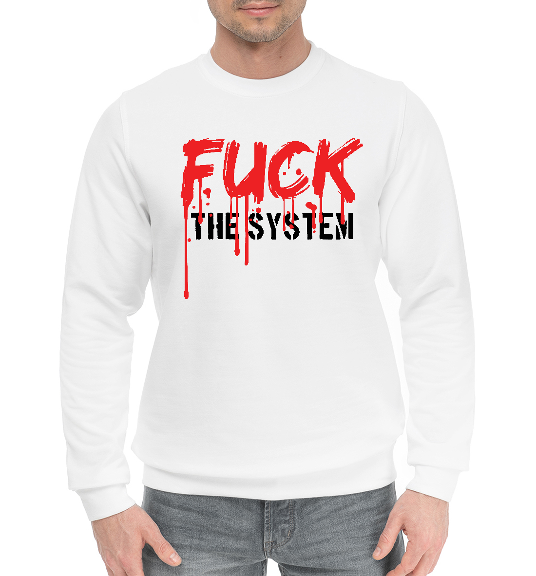 Мужской хлопковый свитшот с принтом «Fuck the System (подтеки)»