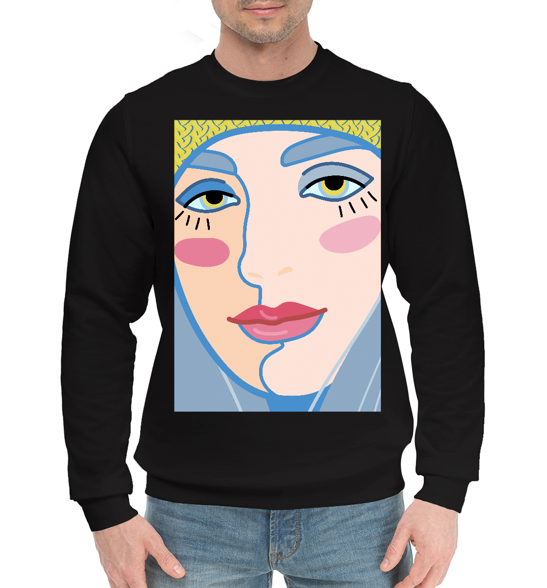 Мужской хлопковый свитшот с принтом «Женское лицо с яркими губами»