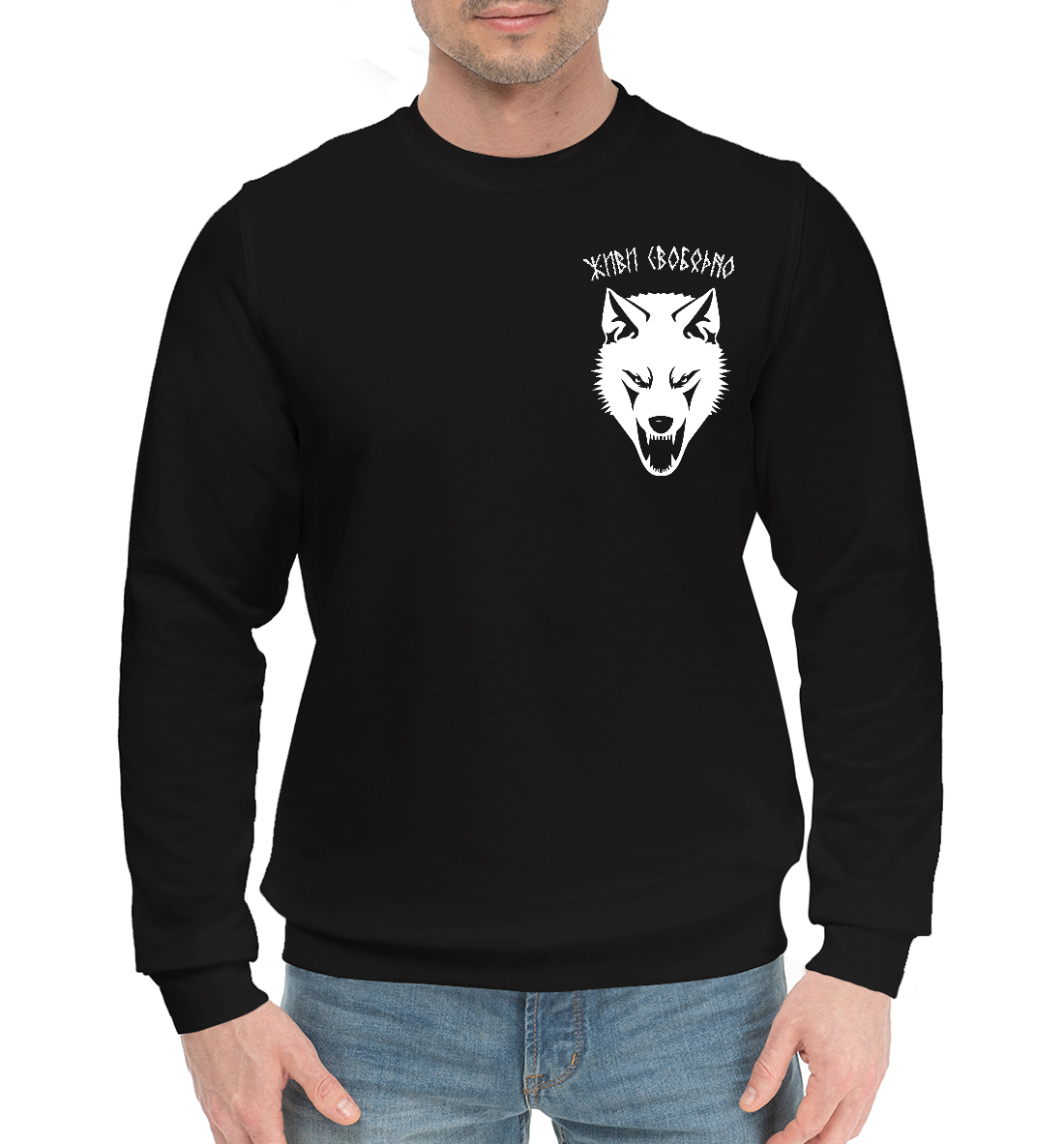 Мужской хлопковый свитшот с принтом «Живи свободно (белый волк)»