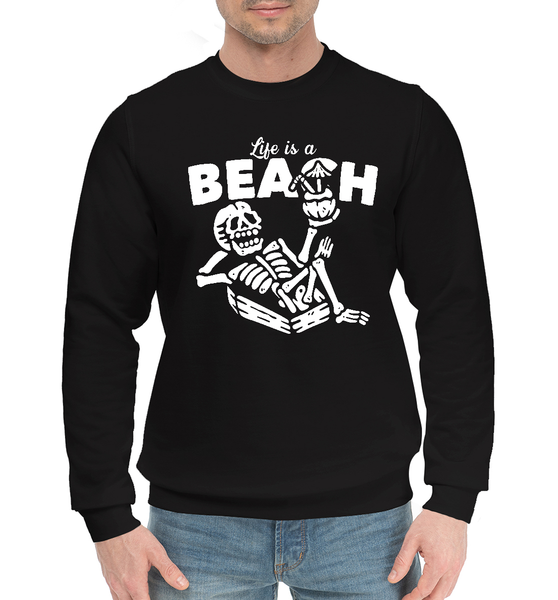 Мужской хлопковый свитшот с принтом «Жизнь это Пляж»