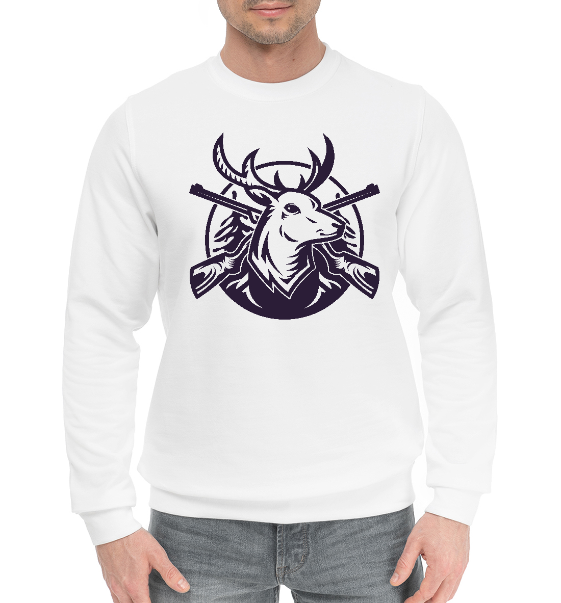 Мужской хлопковый свитшот с принтом «Голова оленя с ружьями»