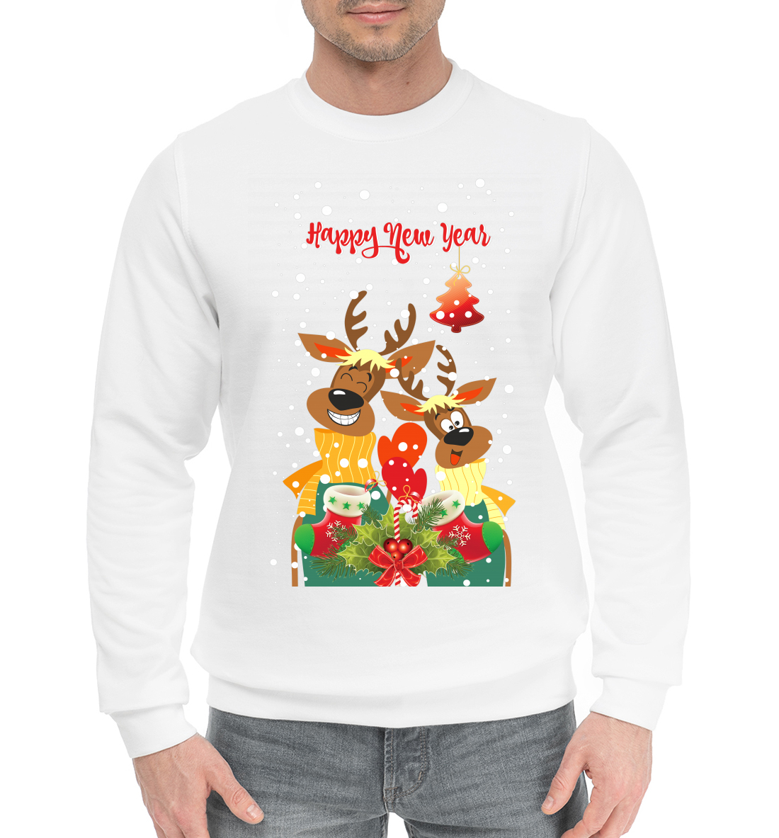 Мужской хлопковый свитшот с принтом «Happy new year»