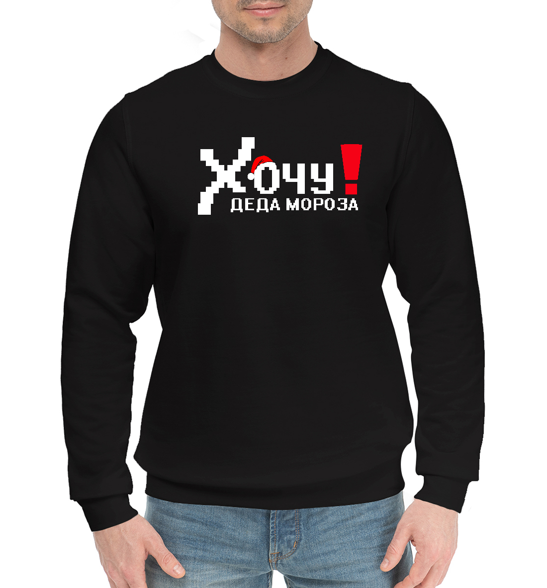 Мужской хлопковый свитшот с принтом «Хочу деда Мороза»