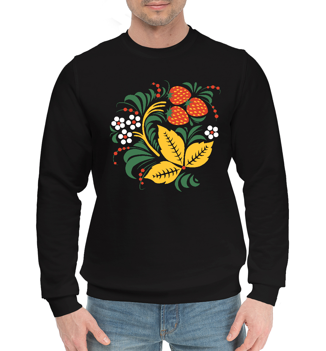 Мужской хлопковый свитшот с принтом «Хохлома роспись Клубника»