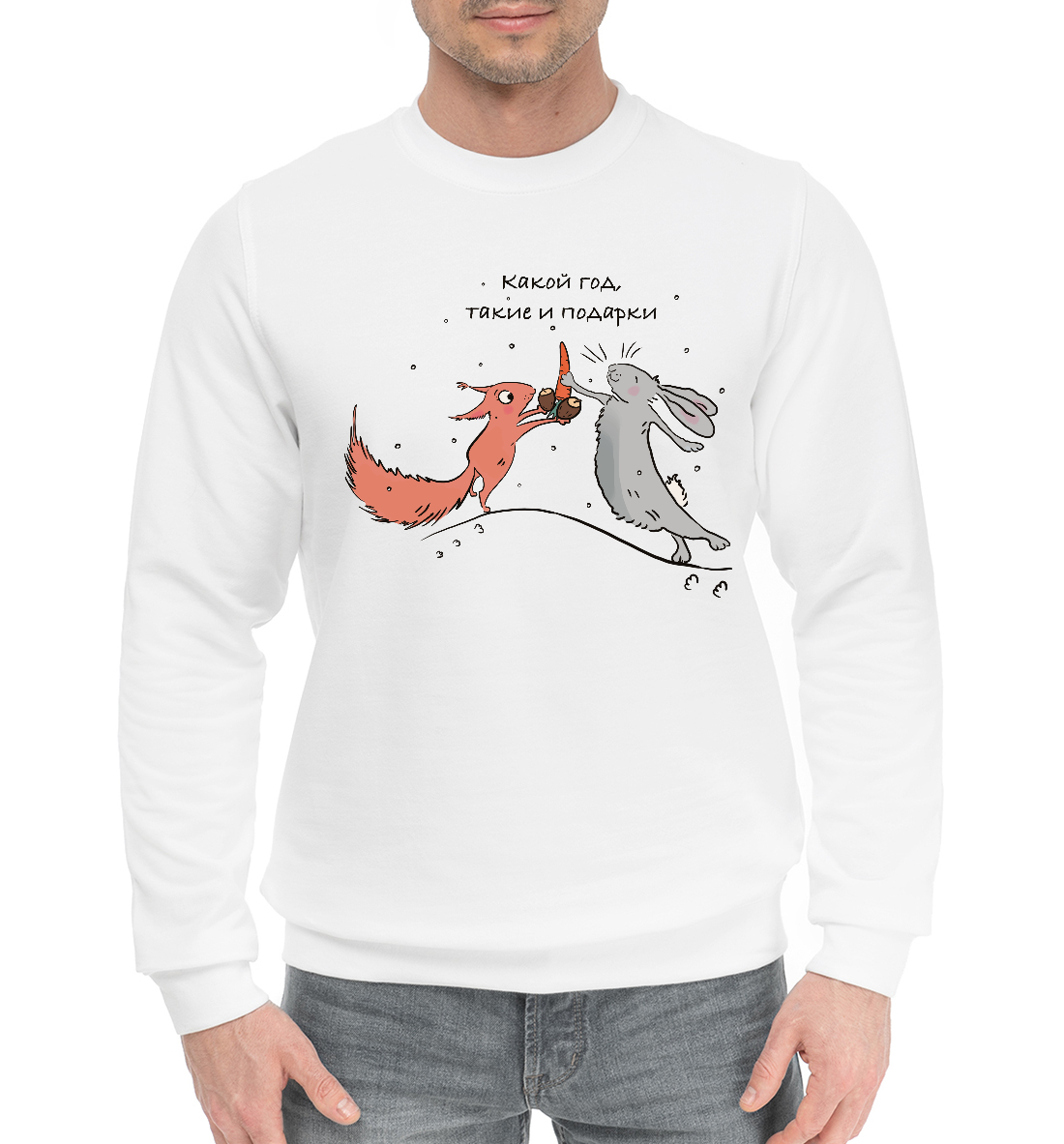 Мужской хлопковый свитшот с принтом «Какой год такие и подарки»