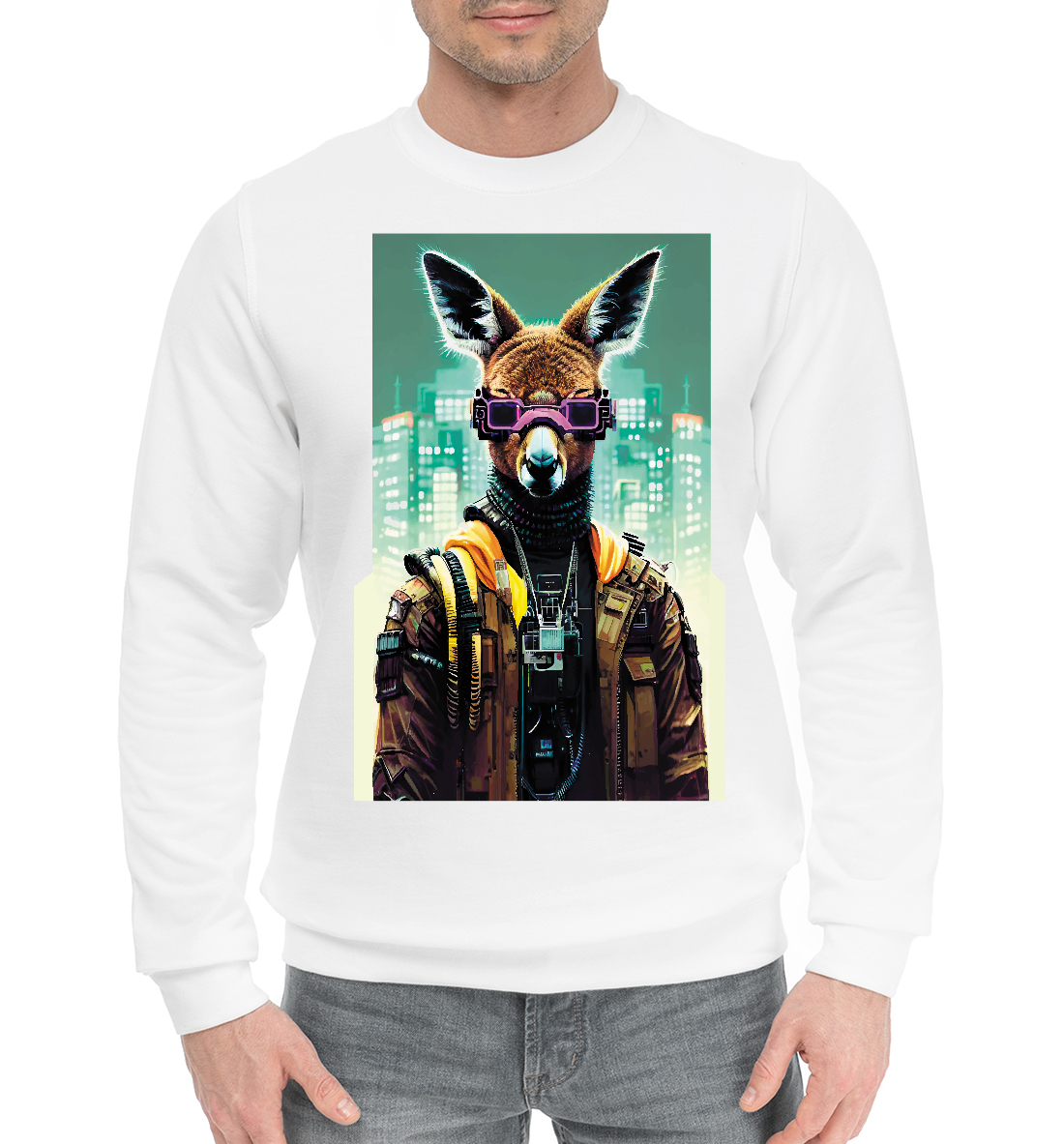Мужской хлопковый свитшот с принтом «Кенгуру в розовых очках»
