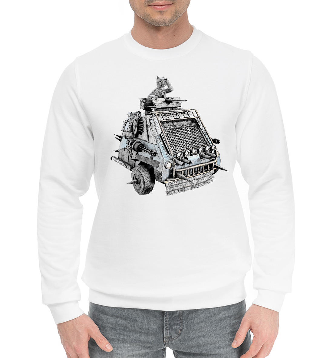 Мужской хлопковый свитшот с принтом «Кот на танке»