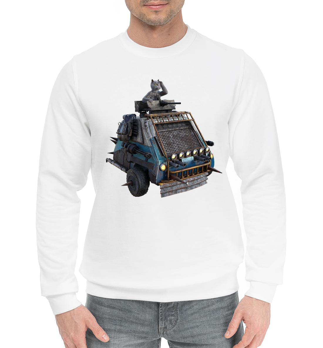 Мужской хлопковый свитшот с принтом «Кот на Танке»
