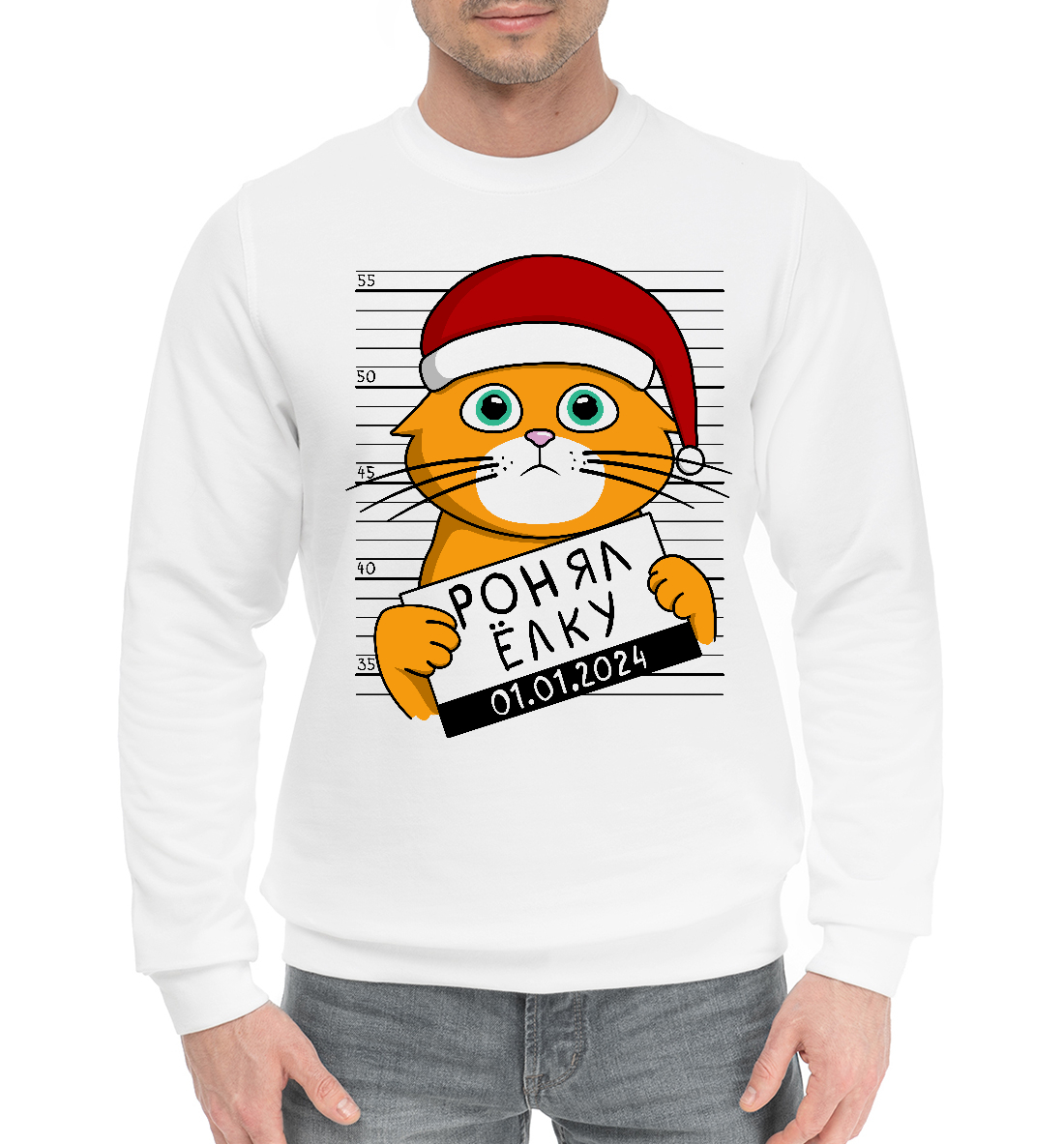 Мужской хлопковый свитшот с принтом «Кот ронял ёлку»