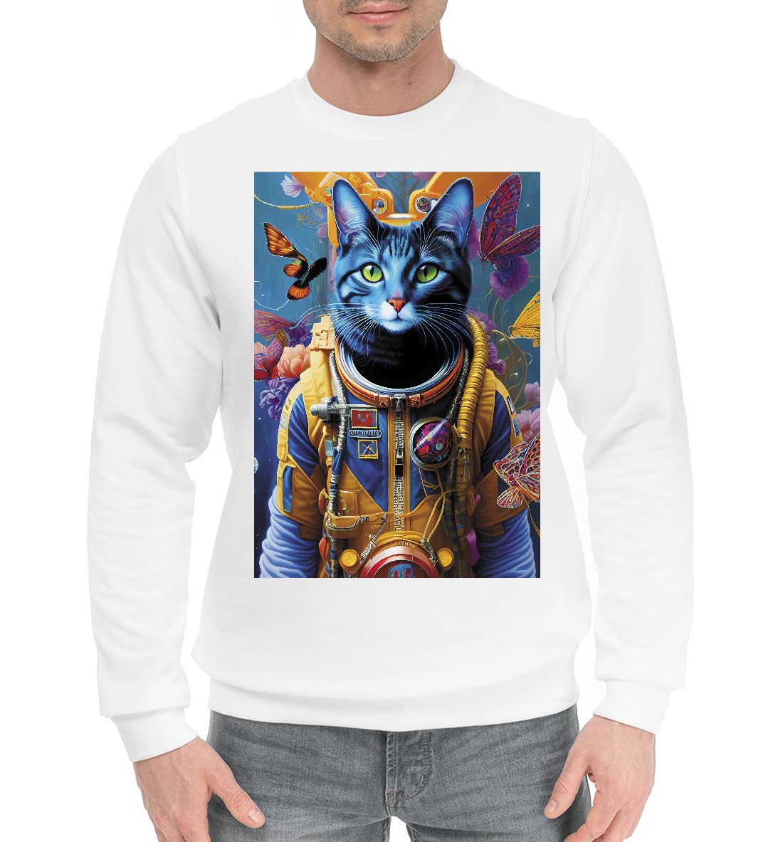 Мужской хлопковый свитшот с принтом «Котик бравый космонавт»