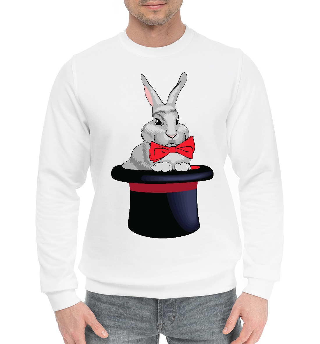 Мужской хлопковый свитшот с принтом «Кролик в шляпе»