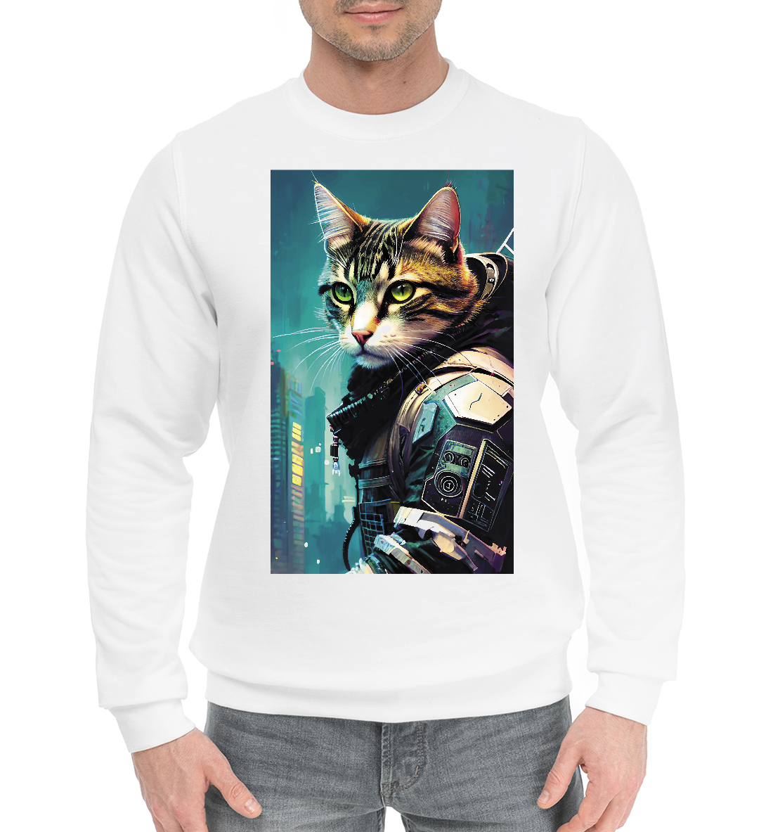 Мужской хлопковый свитшот с принтом «Крутой котяра космонавт»