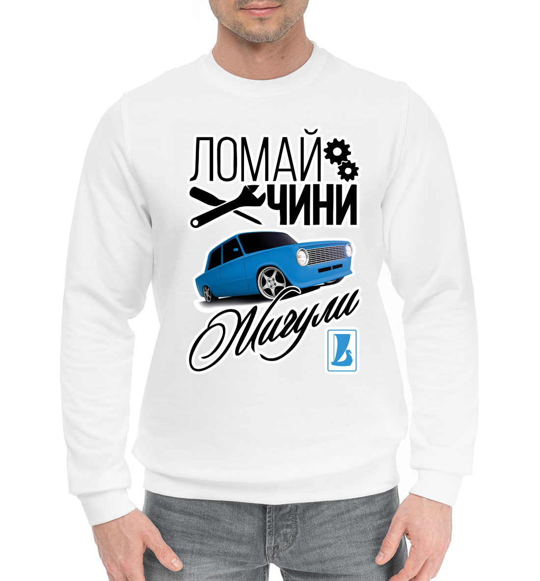 Мужской хлопковый свитшот с принтом «Ломай. Чини. ЖИГУЛИ»