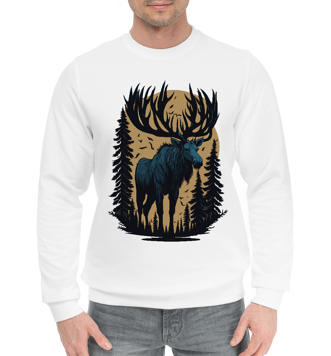 Мужской хлопковый свитшот с принтом «Лось в тайге»