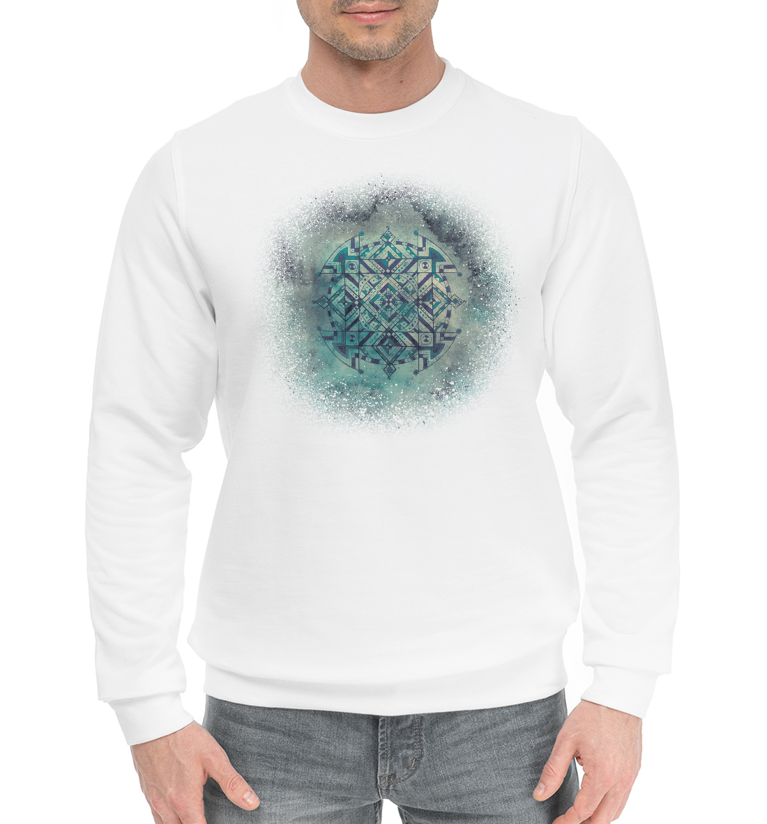 Мужской хлопковый свитшот с принтом «Мандала спокойствия в космосе синяя»