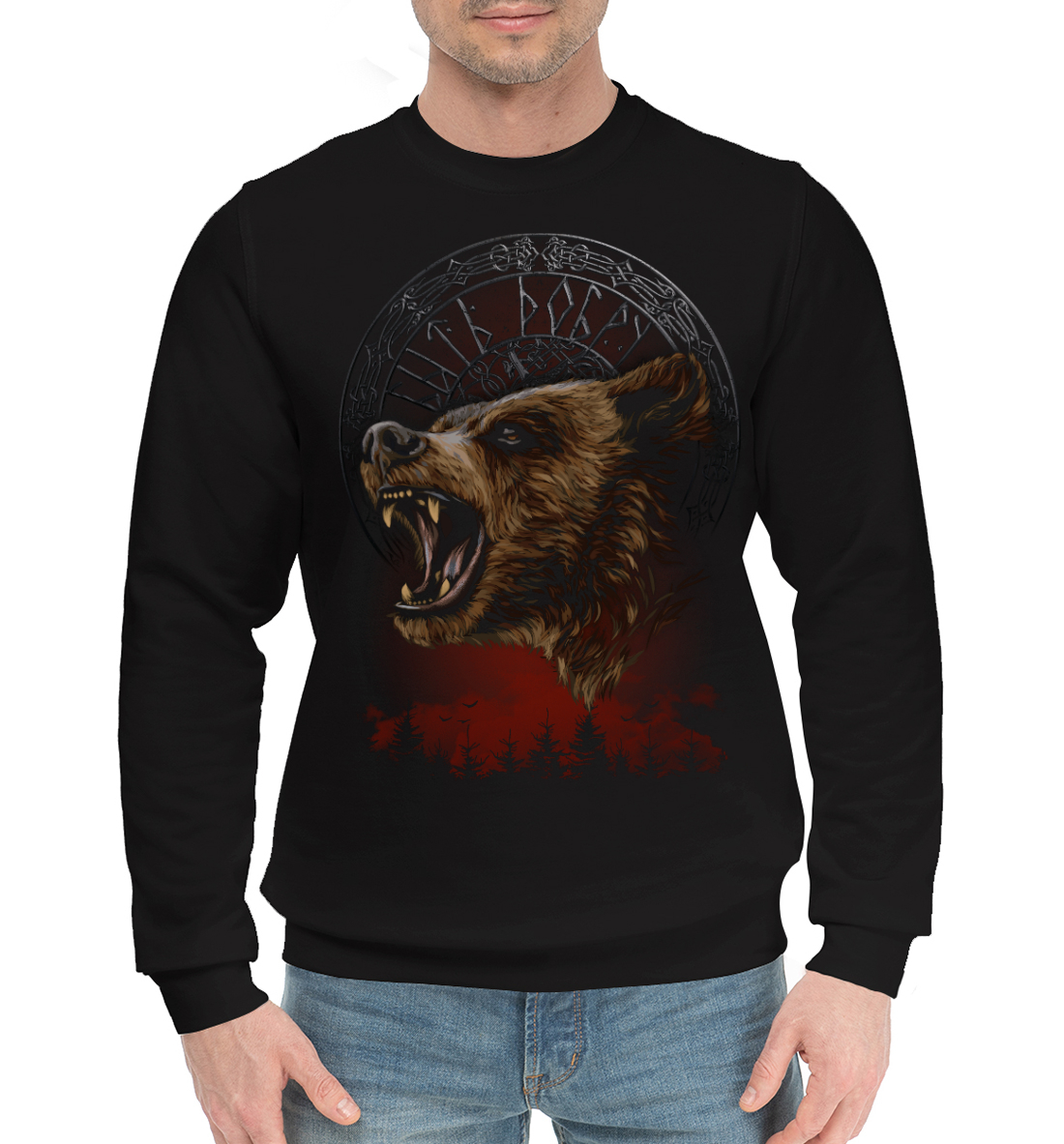 Мужской хлопковый свитшот с принтом «Медведь - Быть Добру»