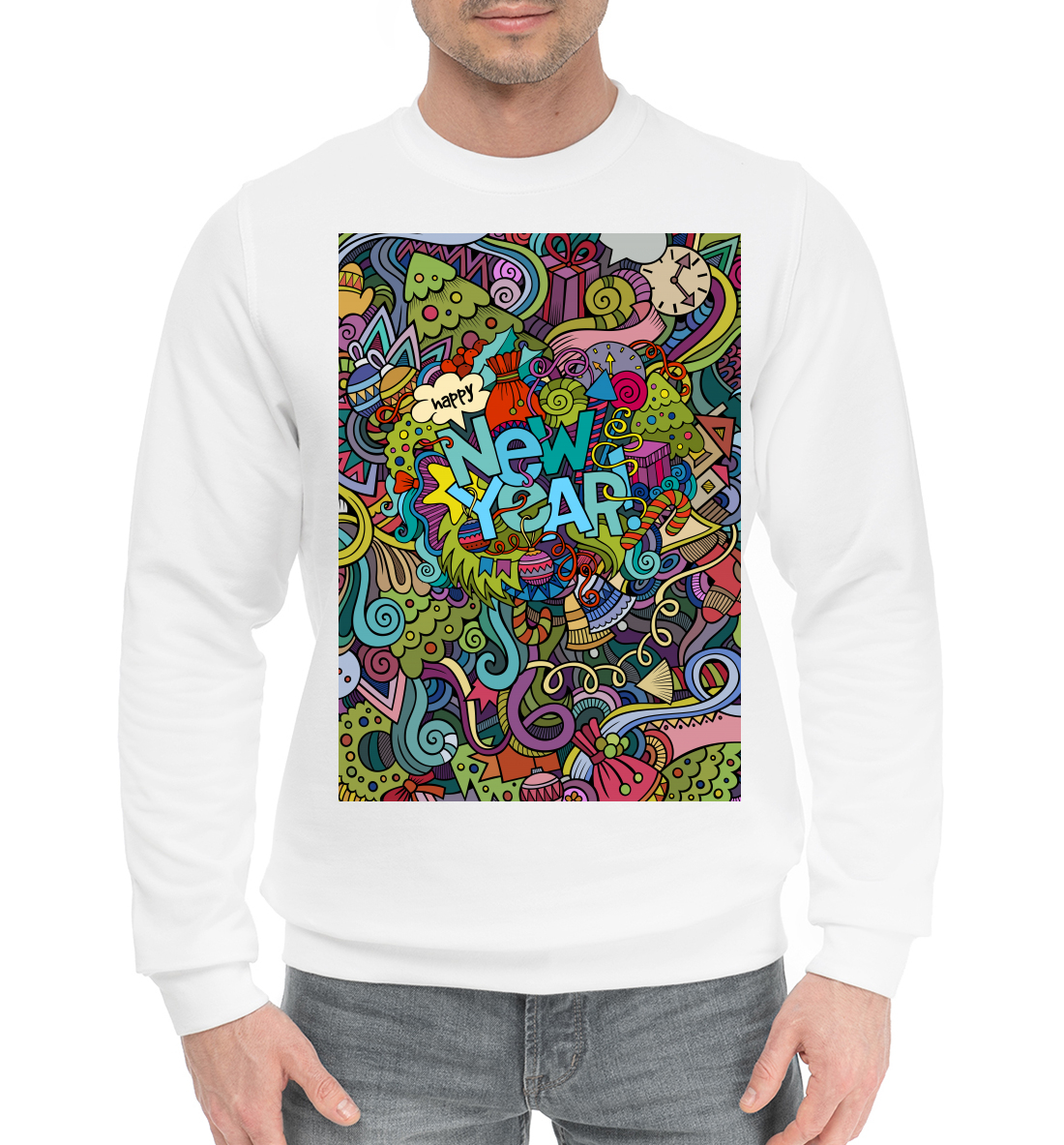 Мужской хлопковый свитшот с принтом «New Year»