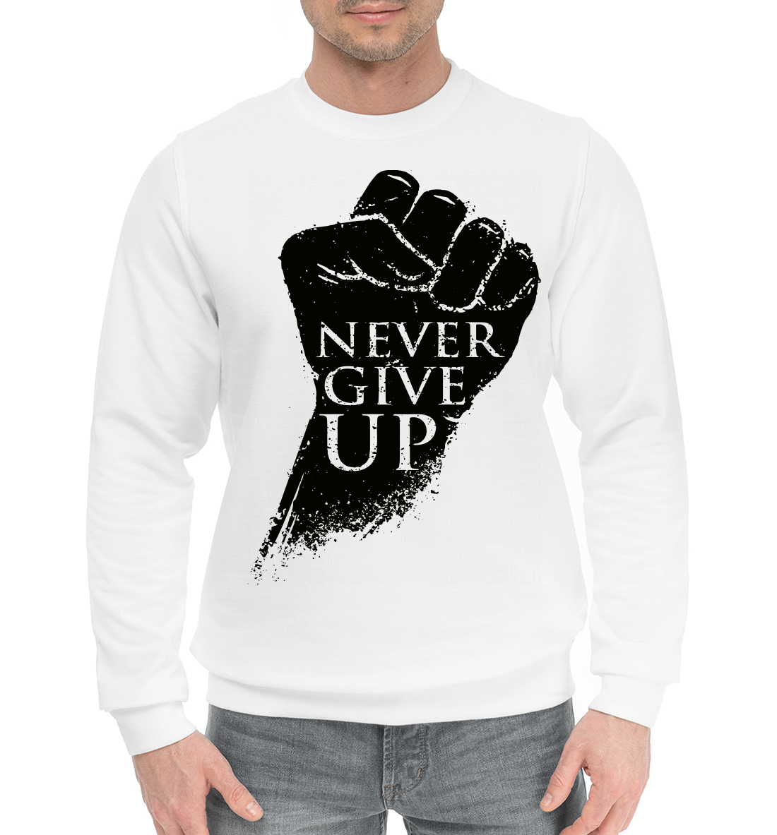 Мужской хлопковый свитшот с принтом «Никогда не сдавайся»