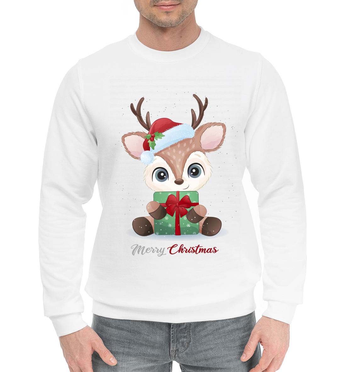 Мужской хлопковый свитшот с принтом «Новогодний олень»