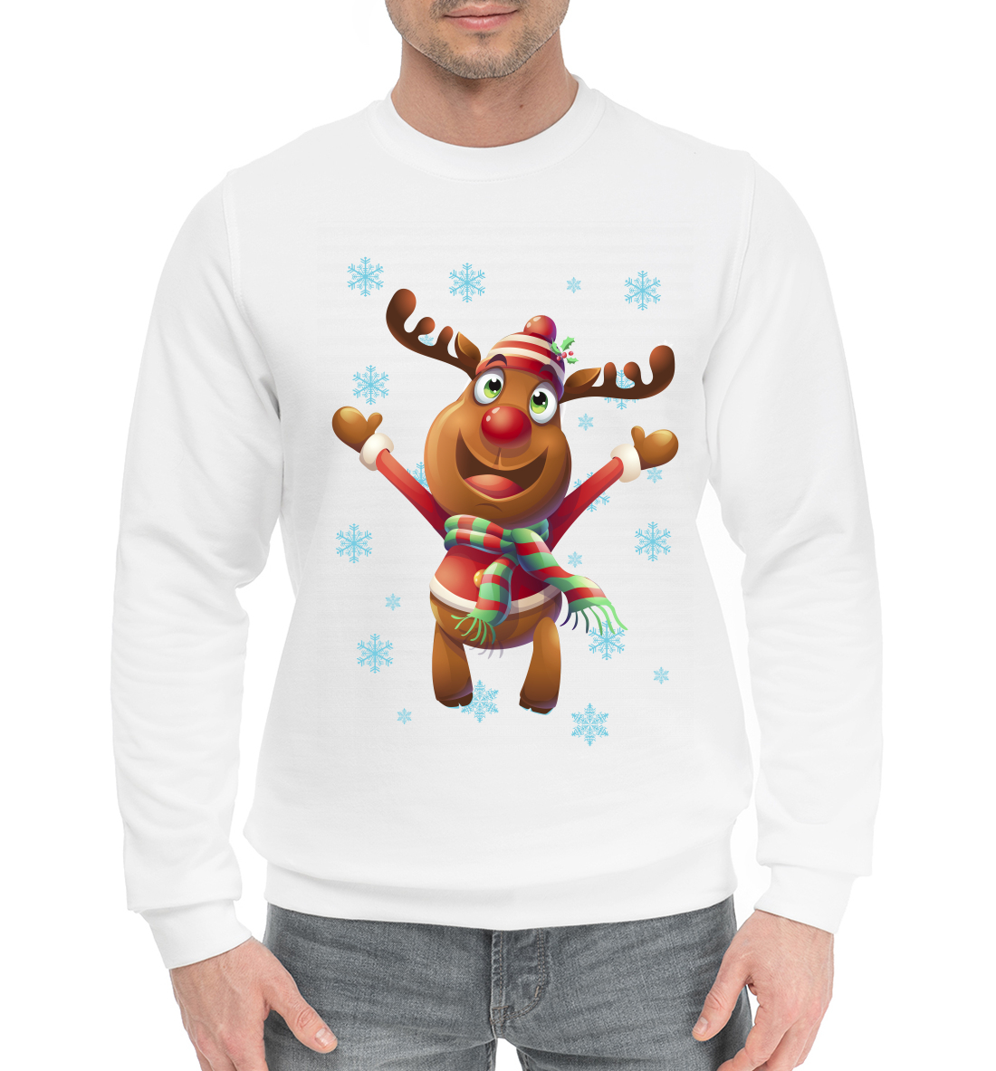 Мужской хлопковый свитшот с принтом «Новогодний олень»