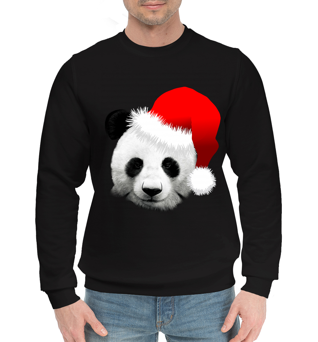 Мужской хлопковый свитшот с принтом «Новогодний Панда»