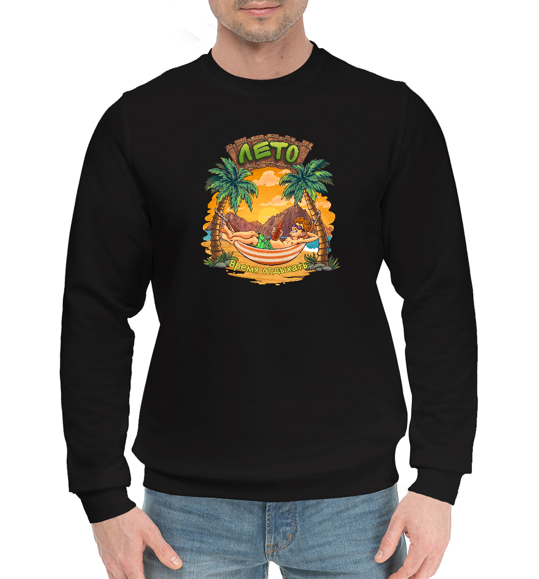 Мужской хлопковый свитшот с принтом «Отдыхающий на пляже среди пальм»