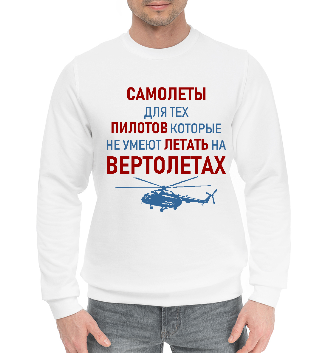Мужской хлопковый свитшот с принтом «Пилот Вертолета»