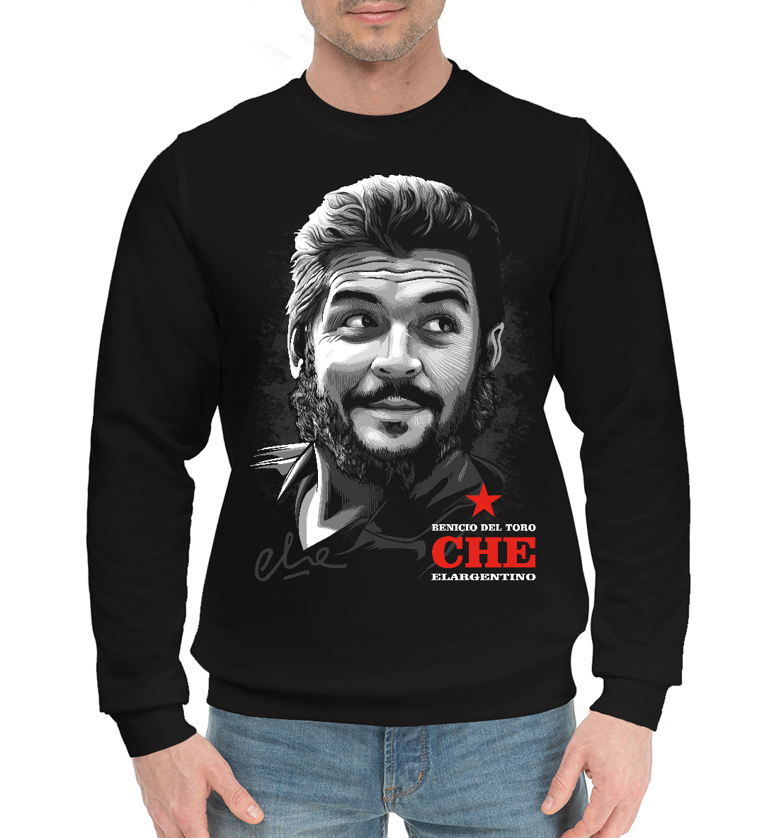 Мужской хлопковый свитшот с принтом «Портрет Че Гевары (чёрный фон)»