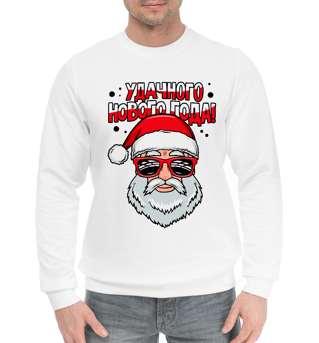Мужской хлопковый свитшот с принтом «Прикольный Дед Мороз (5.1)»