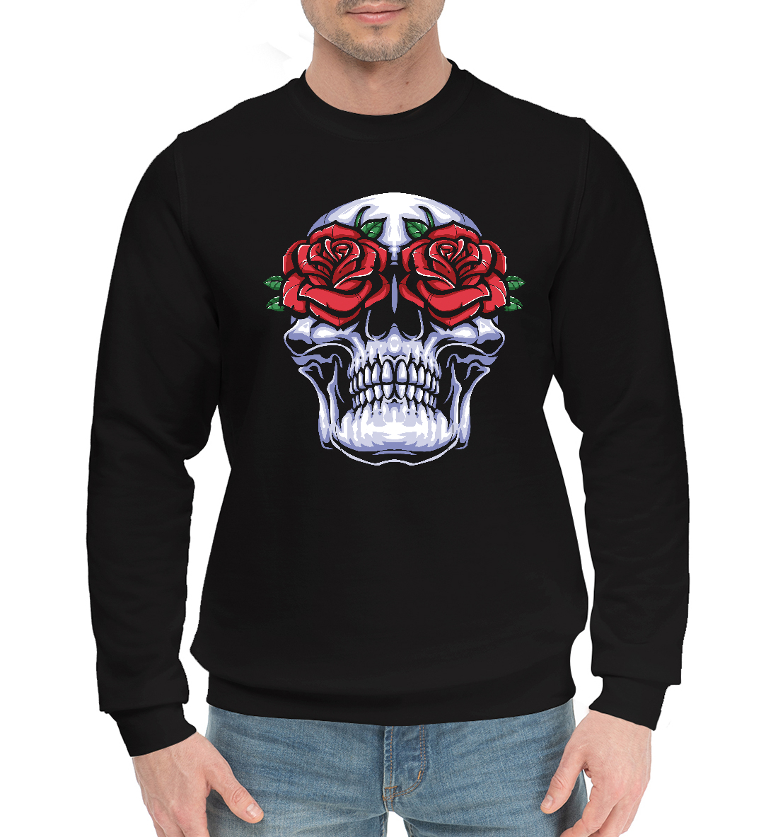 Мужской хлопковый свитшот с принтом «Розовый череп»