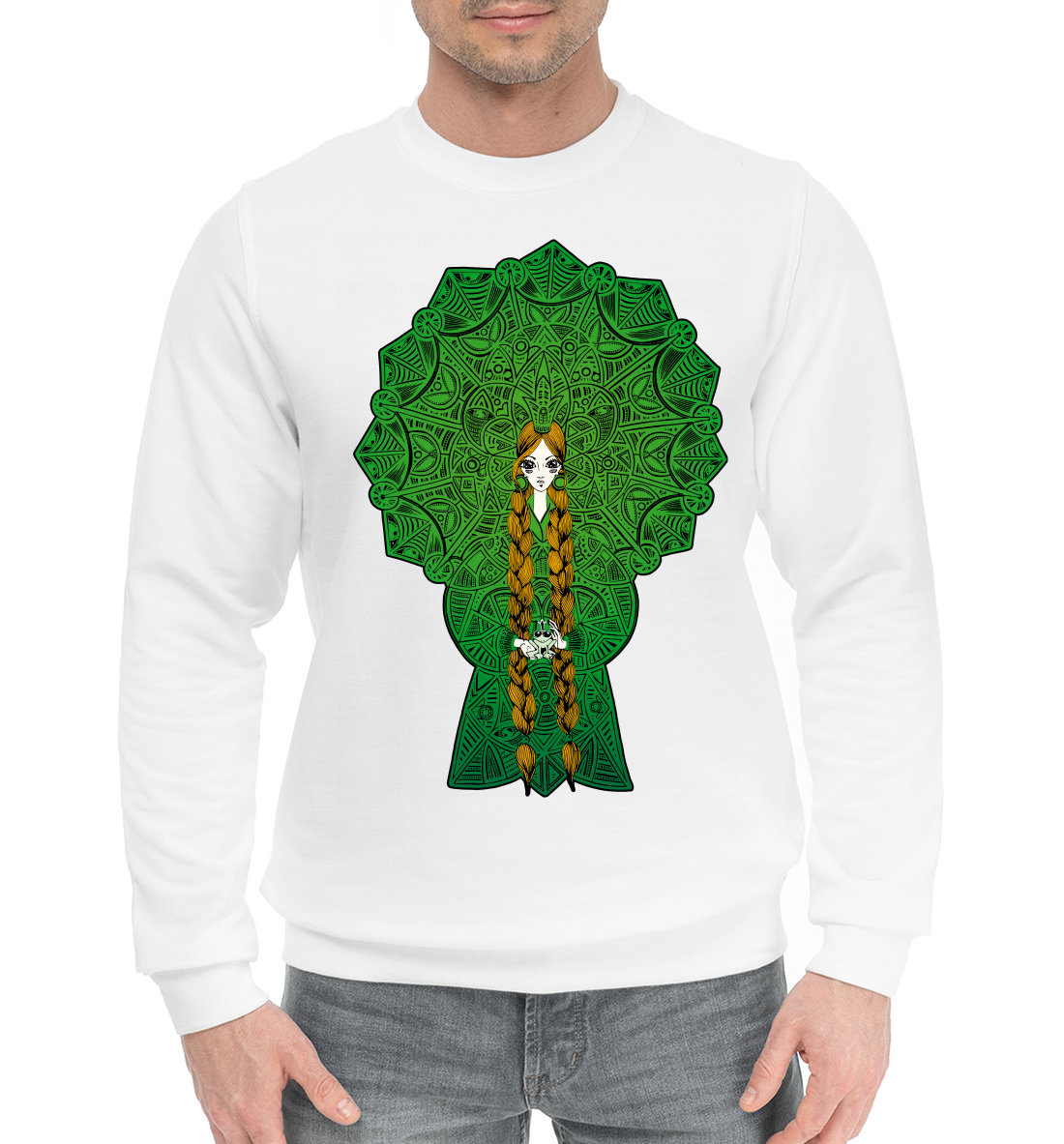 Мужской хлопковый свитшот с принтом «Русская красавица»