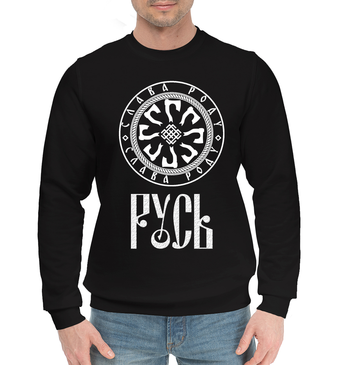 Мужской хлопковый свитшот с принтом «Русь (Валькирия и топоры)»