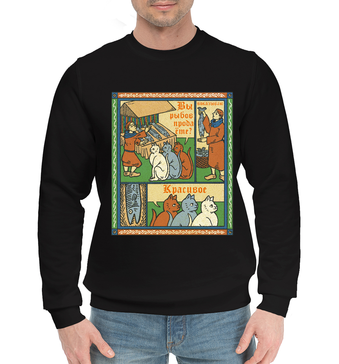 Мужской хлопковый свитшот с принтом «Рыбов продаёте Красивое мем»